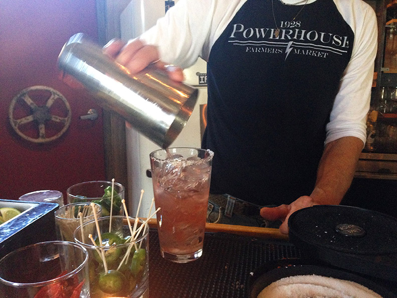 The final concoction on the menu was Julia’s Friendly Punch. Berkes described it as one of Power House’s most popular drinks, and since it kind of tasted like a grown-up pink lemonade, it’s easy to see why. This one began with Svedka Citrus, lemon juice, plain ol’ simple syrup and Luxardo Liqueur. After shaking and straining it into a salted pint glass, it was splashed with soda and filled the rest of the way with — wait for it — Guayakí Yerba Mate. Garnished with a line of blueberries and a lemon wedge, Julia’s Friendly Punch is definitely something you’d want in your hand on a sizzling Oklahoma afternoon.