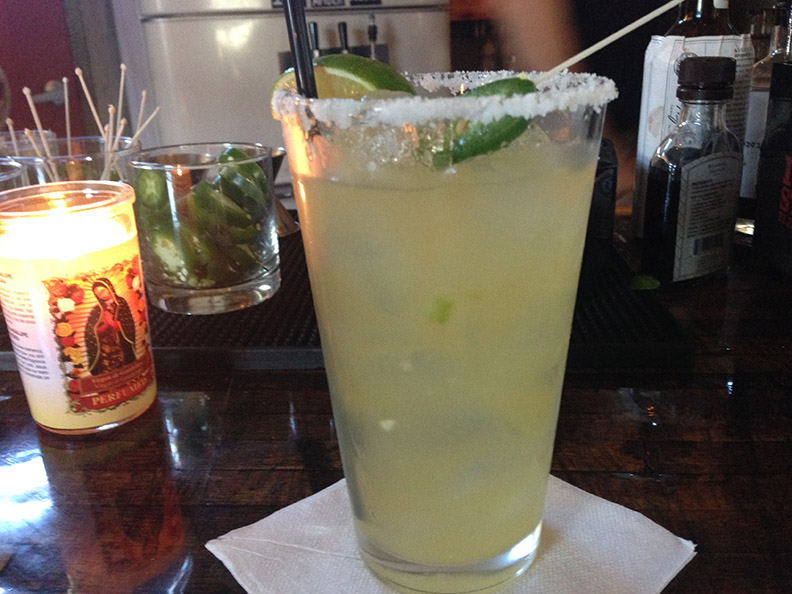 First up was the Spicy Sexton Margarita, and by spicy I do mean spicy. Luckily I’m into that kind of stuff, so I gladly gave it a go. Berkes started by muddling two slices of fresh jalapeño pepper and then poured in Cazadores, Cointreau, Grand Marnier and lime juice. But what really packs the punch is the simple syrup — for this margarita, Power House opts to blend theirs with ancho chile and habanero pepper. Shake, strain, and salt that pint glass, top it with a jalapeño lollipop and a lime wedge, and you’ve got the Spicy Sexton Margarita.